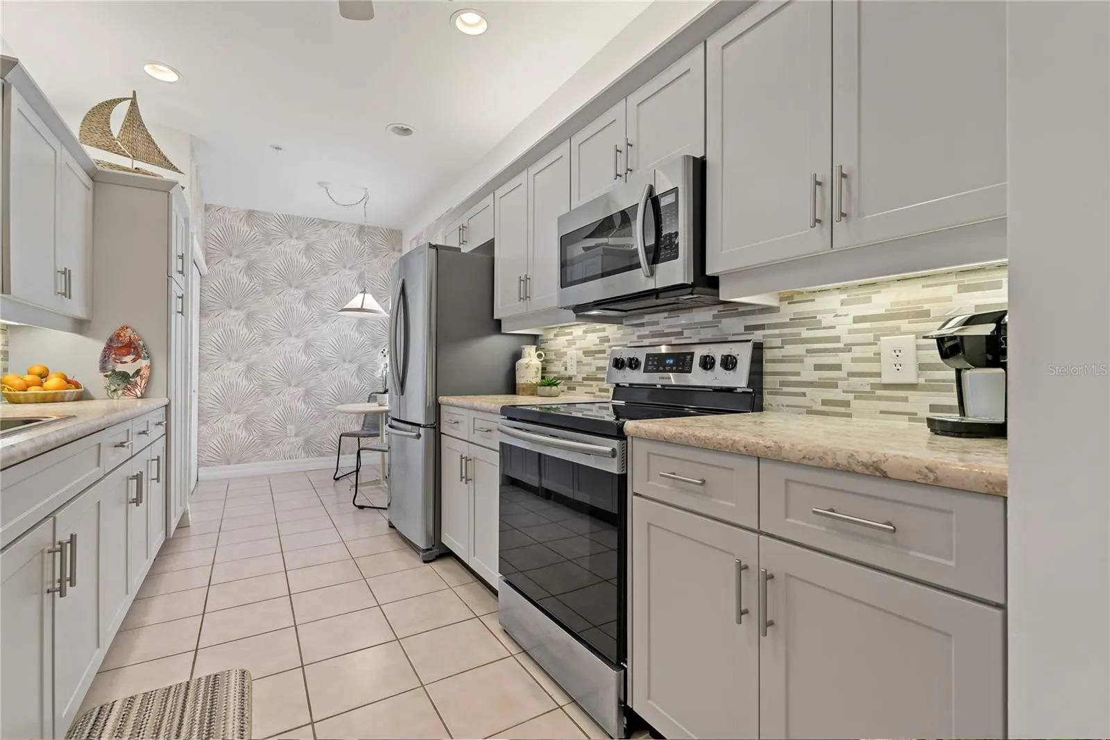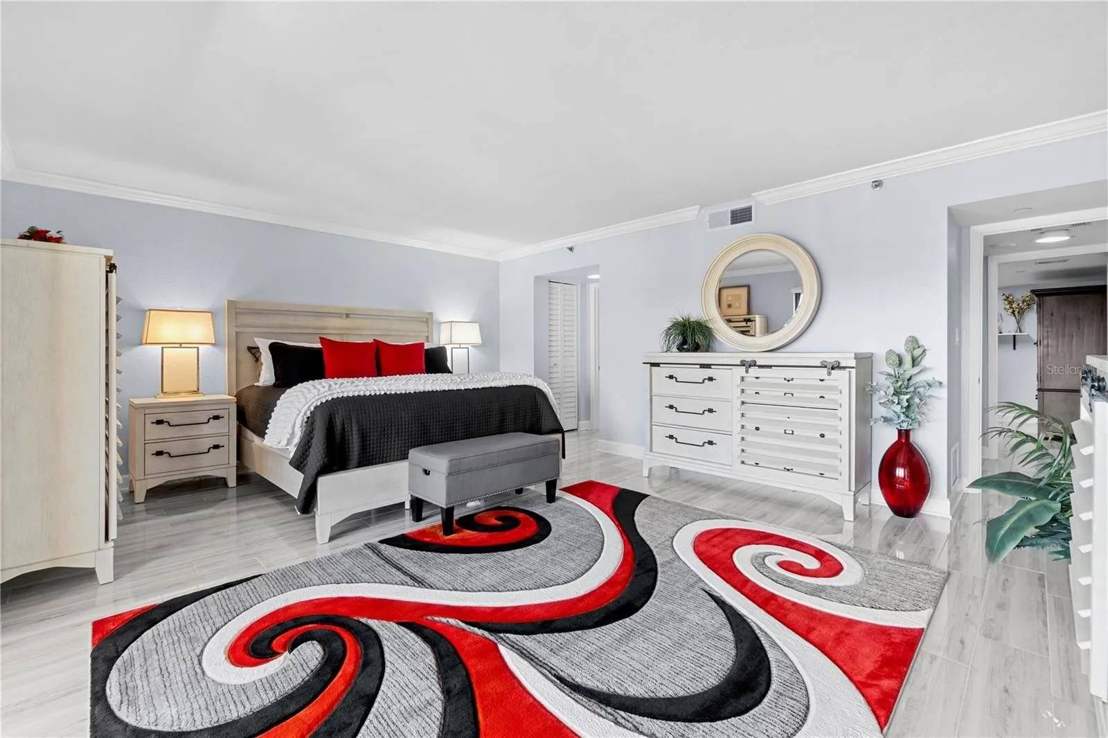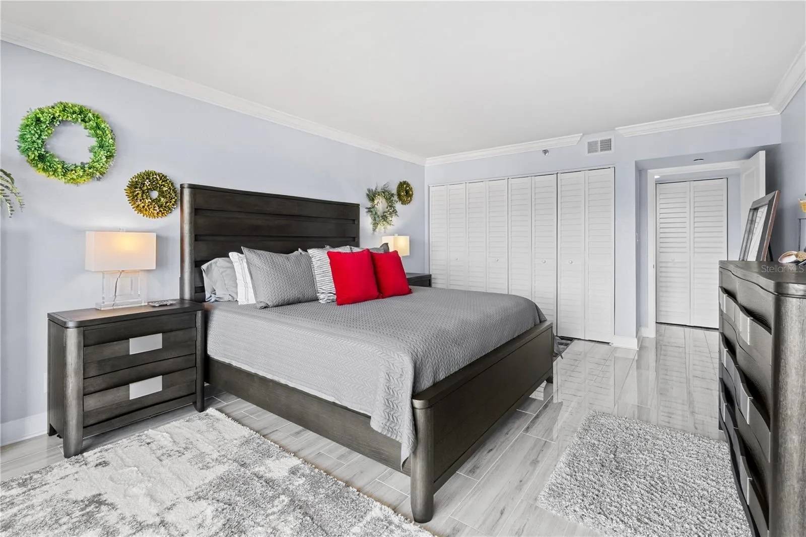 Everything feels brand new in this high-end renovation that includes beautiful laminate plank flooring that flows seamlessly throughout, crown molding, 5-inch baseboards, new interior doors, electric blinds, and all new fixtures. There are also upgraded floor to ceiling sliding doors that access a spacious balcony with captivating views of the beach, Gulf, and Intracoastal Waterway. All doors are protected by electric roll down hurricane shutters. The kitchen is a masterpiece with gorgeous granite countertops, ceramic backsplash, recessed ambient lighting, and stainless-steel GE Profile appliances. Custom Shaker wood cabinets with brushed satin nickel hardware and soft-close drawers frame in this wonderful space. Both baths are beautifully updated with granite countertops, elegant tile work, and upscale fixtures. The owner’s retreat is a spacious sanctuary that features floor to ceiling sliding doors that access the balcony, dual closets, and en suite bath with dual sinks and upgraded resort-style shower. This property also comes with a premium under building parking space and storage locker for your beach toys. South Beach II is a premiere gated community that is situated on one of the most pristine beaches that Florida has to offer. Manicured grounds and lush tropical landscaping create a carefree and welcoming environment. Enjoy breathtaking sunsets from the Tiki huts and swim in the heated resort-style pool that overlooks the Gulf. Other amenities include a Club Room, newly updated fitness room, onsite manager, and free membership to the Clearwater Community Sailing Center. Close to great restaurants, shops, entertainment and the Jolley Trolley! Call now to schedule your tour! Virtual tours are also available.