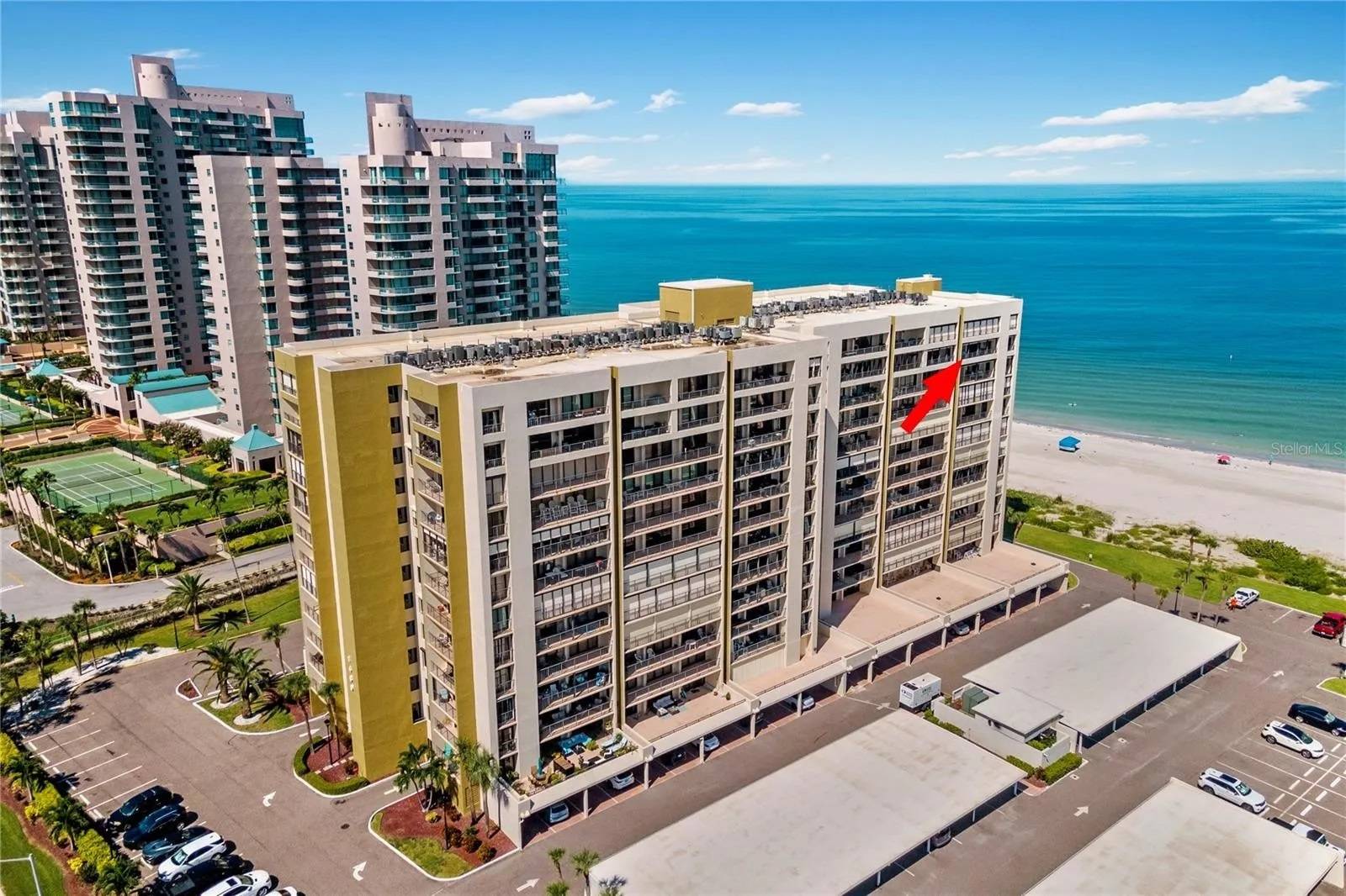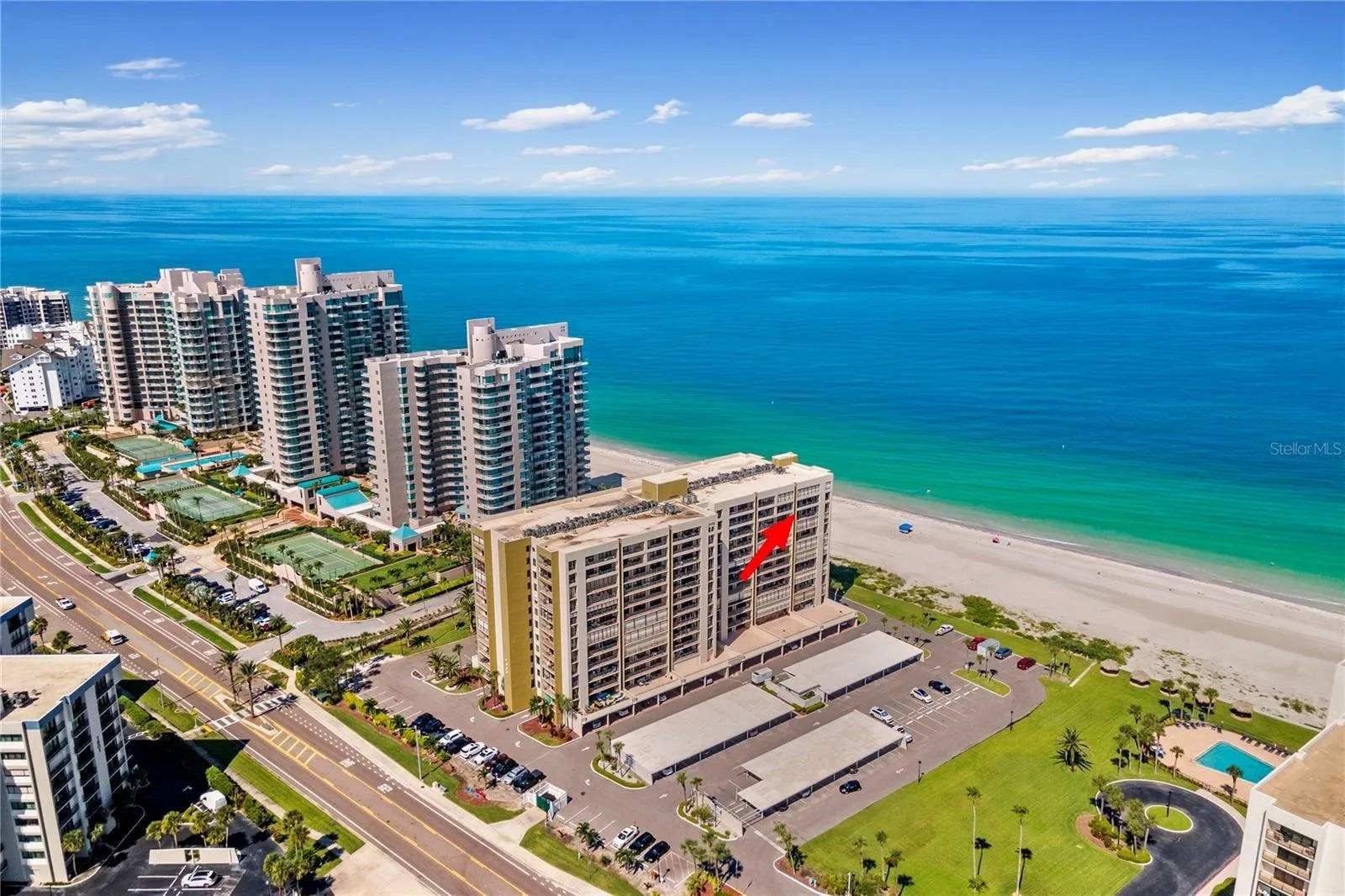 From the moment you step inside this 11th-floor corner retreat, the world beyond disappears. Walls of glass frame unobstructed views of both the Gulf of Mexico and the Intracoastal Waterway, drawing your gaze to an endless horizon. Three private balconiestotaling over 500 square feet of outdoor living spaceinvite you to savor every sunrise, every sunset, every salty breeze. In 2020, this residence was completely transformed into a turnkey showpiece. Every detail was carefully chosen by the seller for beauty, function, and harmony. The open-concept great room flows effortlessly from living to dining to kitchen, with marble countertops, soft-close shaker cabinetry, under-cabinet lighting, and premium stainless appliances creating an entertainers dream. Glossy slender-plank ceramic tile flooring runs throughout, catching the light and amplifying the homes modern coastal aesthetic. Every door and window opening is equipped with exterior hurricane shutters for ultimate storm protection, and custom interior solar shadestranslucent in the great room to filter light while preserving views, and opaque in the bedrooms for complete privacyoffer both elegance and functionality. Private spaces, perfected: The primary suite is a masterclass in retreat designsliding doors open to a private balcony, while the en-suite bath offers dual vanities, a walk-in shower, and an oversized walk-in closet. The guest suite offers balcony access of its own, ensuring visitors experience the same breathtaking views and comfort. Prime, Secluded Beachfront – Set on one of Sand Keys most coveted stretches of shoreline, this residence offers the rare combination of direct beachfront access and serene seclusion. Here, you can step from the lobby to the sand in minutesyet the private, uncrowded setting makes it feel worlds away from the bustle of nearby Clearwater Beach. Miles of pristine coastline are yours to explore, with only the sound of waves and the call of seabirds as your soundtrack. Beyond your door, amenities rival the finest for resort living year round: a heated waterfront pool, grilling station, poolside tiki bar, and beachfront tiki huts create the ultimate backdrop for leisure. Assigned under-building parking, a private storage unit, and a pet-friendly policy add everyday convenience. With Milestone & SIRS reports complete, monthly fees covering flood insurance and hurricane shutters throughout, peace of mind is built right in. Monthly fee also include water, sewer, trash, cable, and internet. Perfectly positioned just a short distance from Sand Key Beach State Park (nature trials and dog park), Bay Park (pickleball/tennis courts and playgound), Shops On Sand Key (dining and retail) and Clearwater Beachs vibrant dining, boutique shopping, and marine activites. This isnt simply a condo. Its your front-row seat to the Gulfturnkey, timeless, and its waiting for you!
